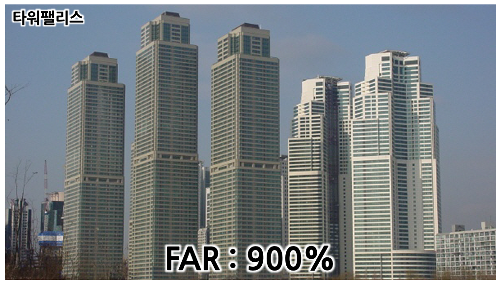 실제로 현재 아파트단지들의 용적률을 비교해 보자면,