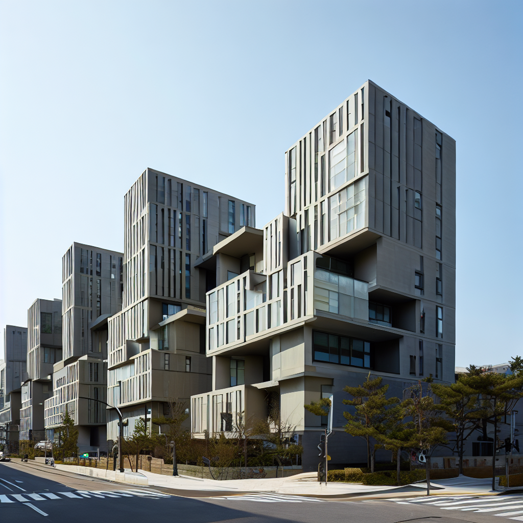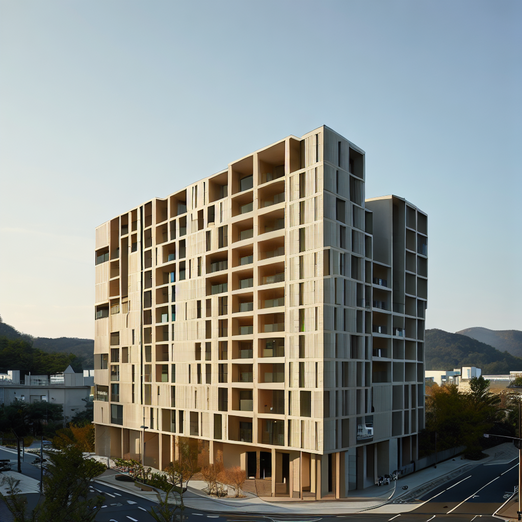 낮은 단층형 아파트라고 한다면, 저런 파사드를 가진 건물들이 나올 수 있겠다. 수직 수평의 패턴과 일부 매스까지 그 표현을 따라가는 디자인을 만들어질 가능성이 충분히 있다. 그치만, 기본적으로 실제 치퍼필드보다는 조금 분할을 많이 한 듯하다. 기본적으로 한국은 배경이 좋아 보인다.