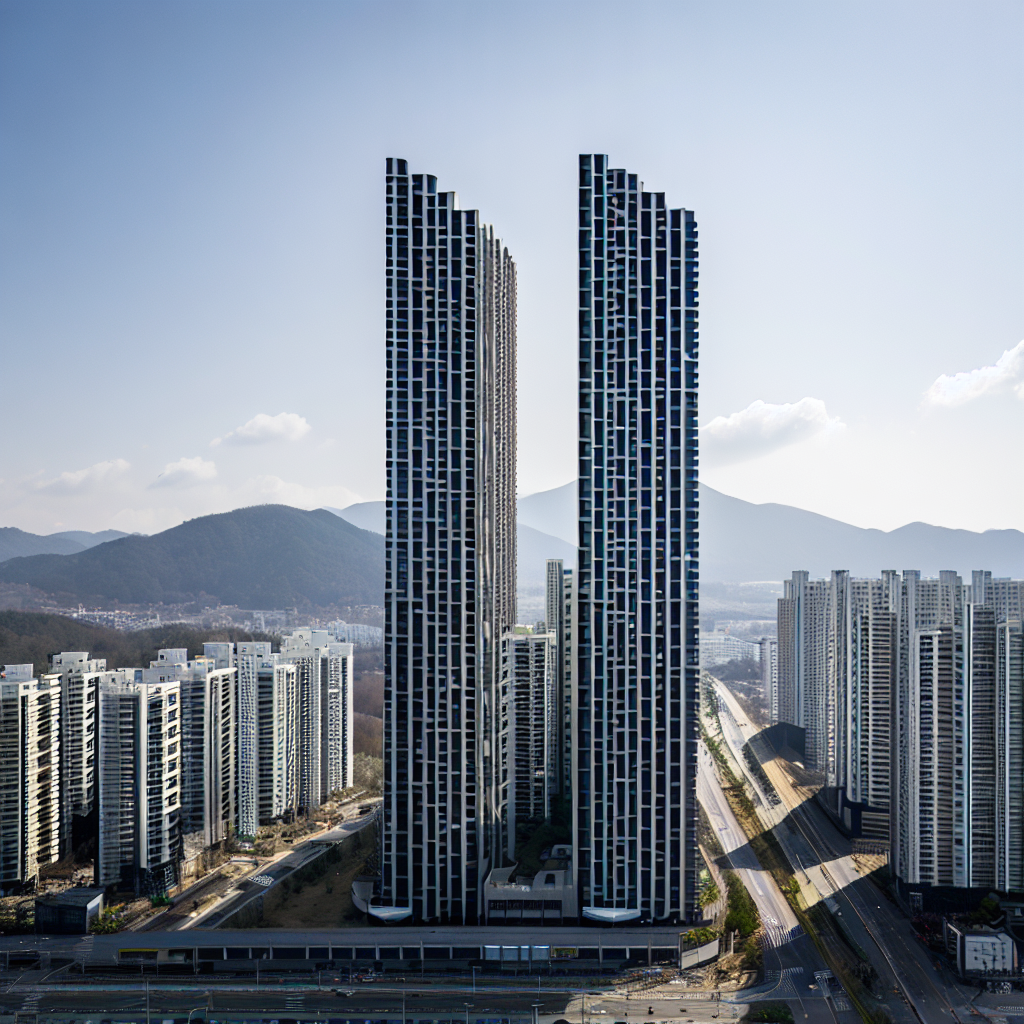 일단 한국의 아파트, 집들 그리고 산을 만들어주는 것은 놀랍다. 그리고 아파트들이 붙어 있듯, 옆으로도 거실이 붙어 있는 표현들도 좋다. 여기서는 우선 치퍼필드의 반복적 표현들이 가장 눈에 들어온다. 기둥이나 난간 처리 그리고 외장 부분까지 수직적이 표현이 들어가 있는 텍스쳐. 그리고 가구 구성까지 잘 나온다. 다소 한국적이다라는 것은 우리 일반아파트 처럼 큰 특징 뚜렷하게 나와 있는 것은 아니지만 , 괜찮다.