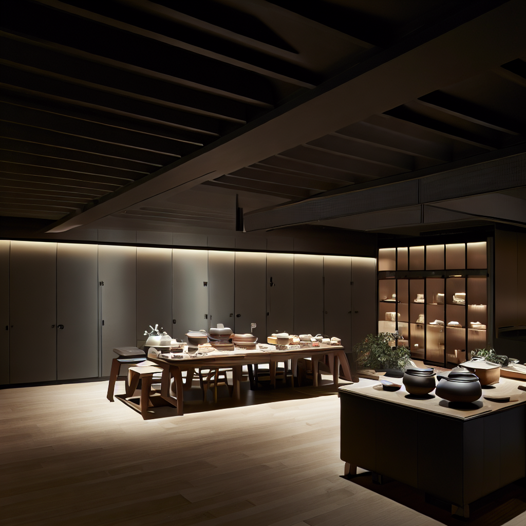 ai가 도출한 이미지 값은 주로 한국 스타일의 기준을 재료 표현에서 뽑아 낸 듯했다. 바닥 표현이나 천장 그리고 몰링 심지어는 도어 표현 까지. 그리고 나머지 구성요소들은 치퍼필드의 정갈한 구성에 맞게 배치 했다.