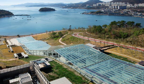 매립이라는 방식을 통해 자연파괴가 아닌 자연순응형 건물을 만들었고, 계곡을 따라 바다로 유입하는 듯한 형상을 띄고 있다. 경사지형을 활용한 열미로 시스템으로 에너지 효율을 높였는데, 이는 땅속에 묻히는 건물 좌우의 벽 부분을 이중으로 만들고 그 벽과 벽사이에 다시 미로를 설치, 내부 공조기에 들어갈 공기를 이 미로에서 미리 데우거나 식히는 기법을 사용 한 것이다.
