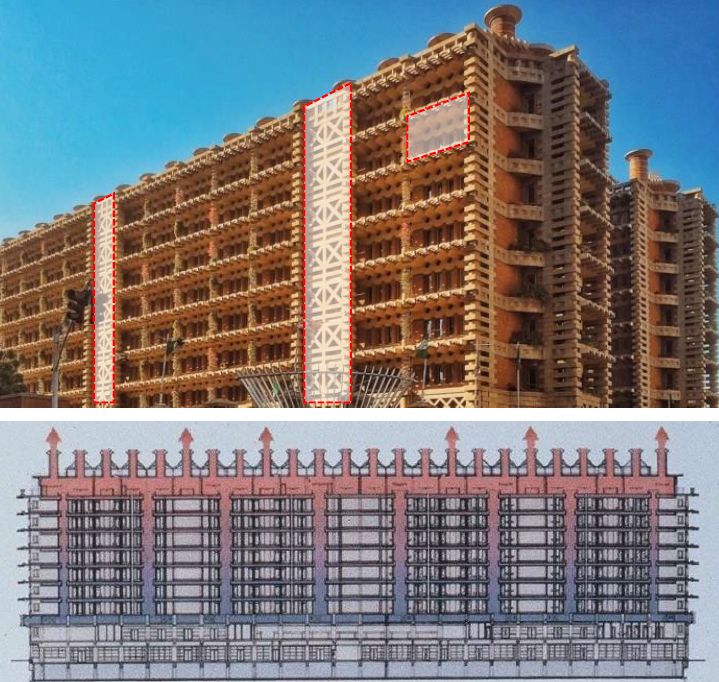 선인장 표면의 깊은 주름은 라디에이터 역할을 하여 체온의 상승을 조절, 낮에는 기공을 닫고 있다가 시원한 밤에만 기공을 열어 이산화탄소를 저장해 해가 뜰 때까지 저장해 낮에 광합성을 하는 역할을 한다. 카타르의 사막성 해야기후로 인해 고온 다습한 카타르의 기후조건을 극복하기 위해, 건조한 환경에서 견뎌내는 선인장 기공의 기능적 특성 활용하고, 햇빛의 강도에 따라 반응하여 개폐되는 창문으로 에너지 효울성을 극대화 한다.