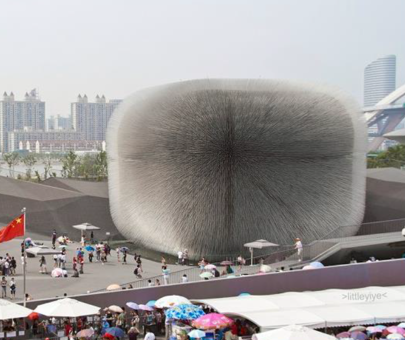 성게 껍질이 육각형 유닛으로 조직된 구조를 응요한 가벼운 구조물로, 조립식 요소로 만들어진 쉘에 가장 적합한 모델 역할을 지닌 파빌리온이다.