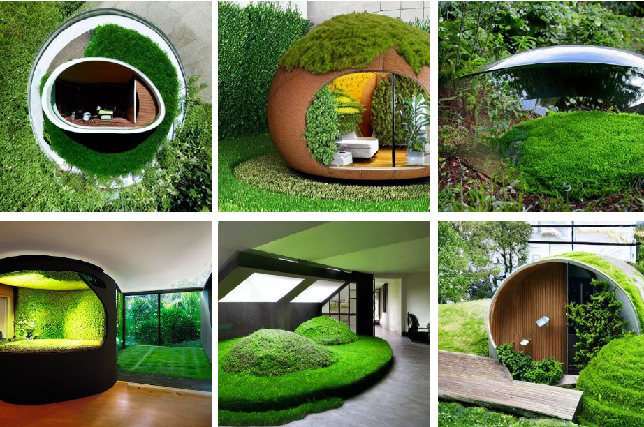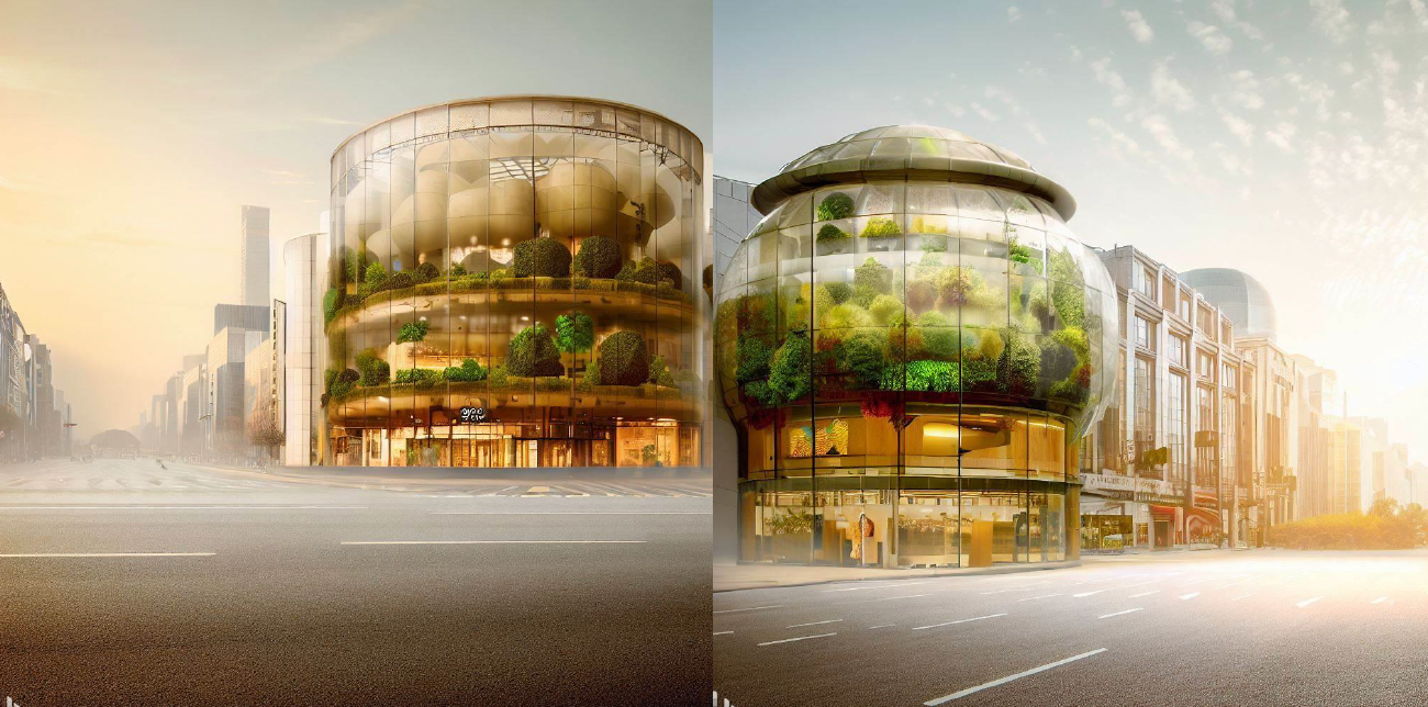 자발적 생산이 가능한 환경을 구축하는 건축의 미래를 생성형 인공지능기반의 여러 사이트를 통해 같은 검색단어로 적용해서 도출
