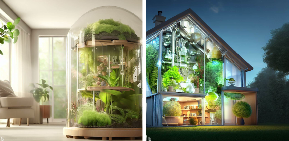 테라리움형 공기 정화장치가 설치된 집은 자연과 기술이 융합된 아름답고 건강한 생활공간이 되어 독특하고 친환경적인 집을 만들수 있을 것이다.