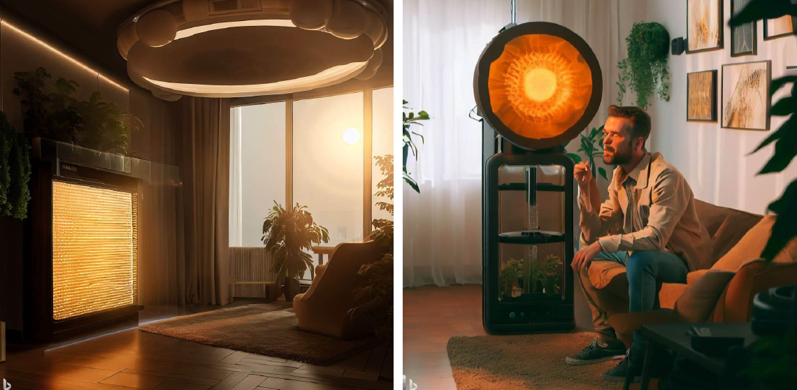 [TEXT] An apartment with an air purification system and an artificial Sun indoors.
