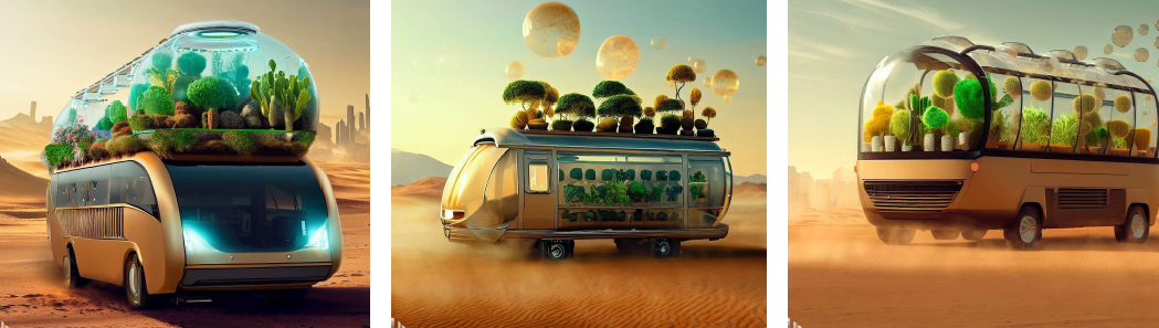 [TEXT] A means of transportation equipped with a terrarium type air purification system against the background of desrtification becomes a beautiful and healthy living space where nature and technology anre fused to create a unique and eco friendly environment.