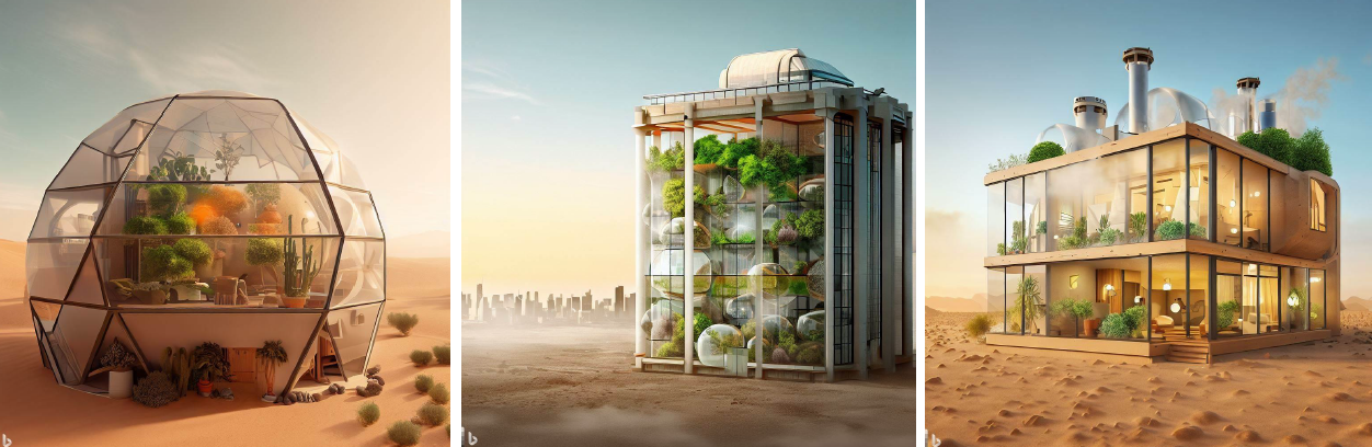 앞서 도출된 모든 이미지 값들은 환경친화적이 단어에, 막구조나 사막환경과 철저히 분리된 도시모습을 만들어주는 공통점을 발견 했다. 아무래도 인간이 생각하는 미래의 사막화된 도시에서 테라리움의 개념을 도입해 만들어지는 건축물을 건강한 거실 개념으로 생각하는 것이 아닌가 싶다.