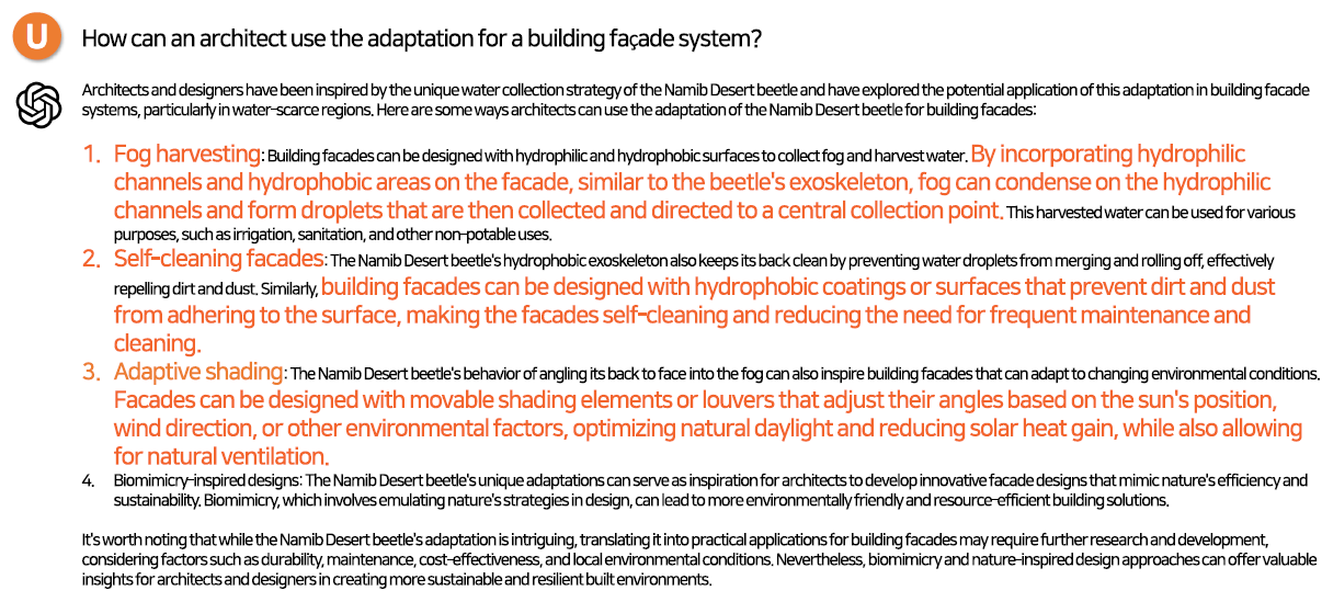 - 안개 수확 : 친수성 패널과 발수성 패널의 조합으로 외피구성