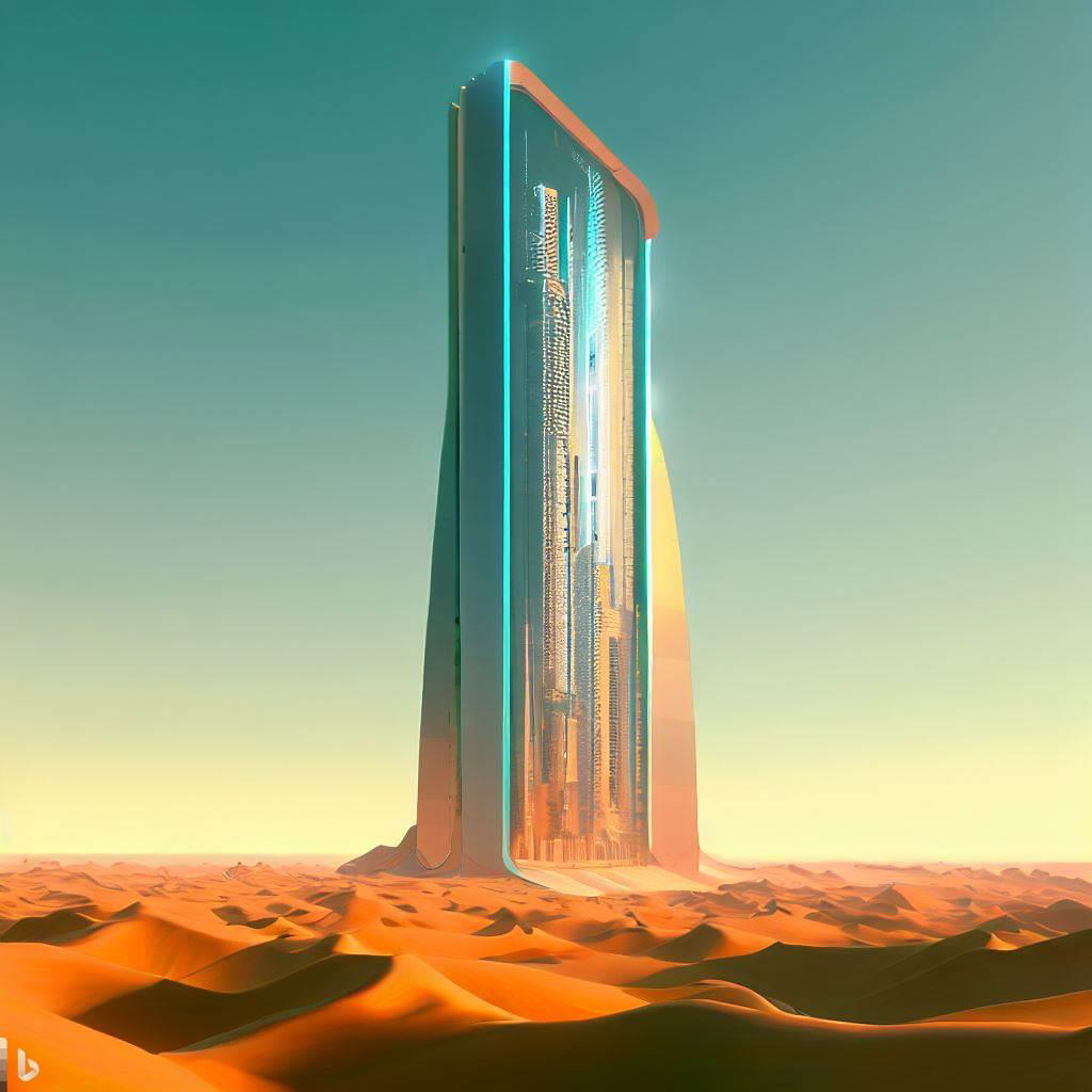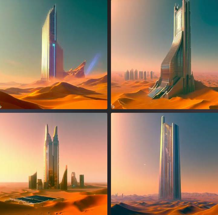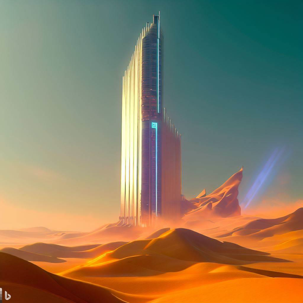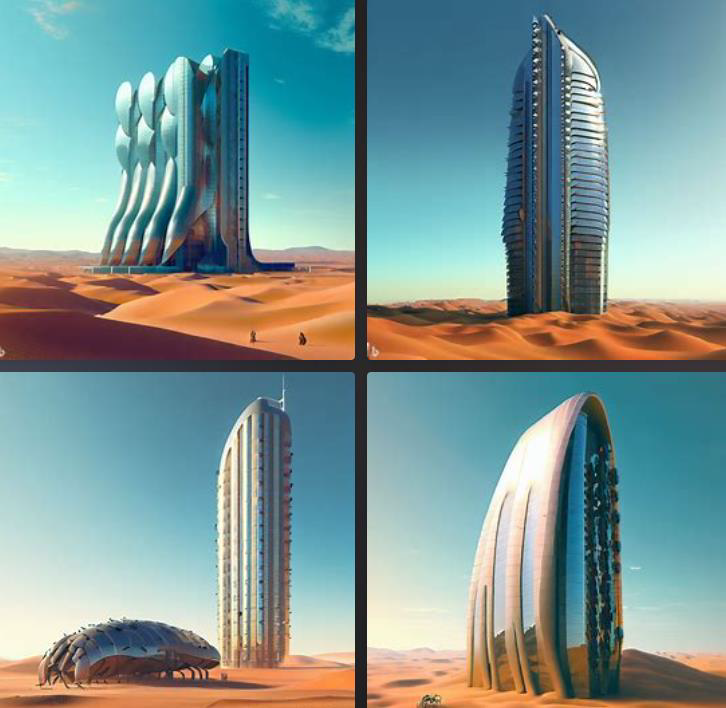 [TEXT] digital art , 3d render , skyscraper in gobi desert + skycraper collecting water like namib desert beetle , building exterior consisted of Hydrophilic panel and hydrophobic panel.