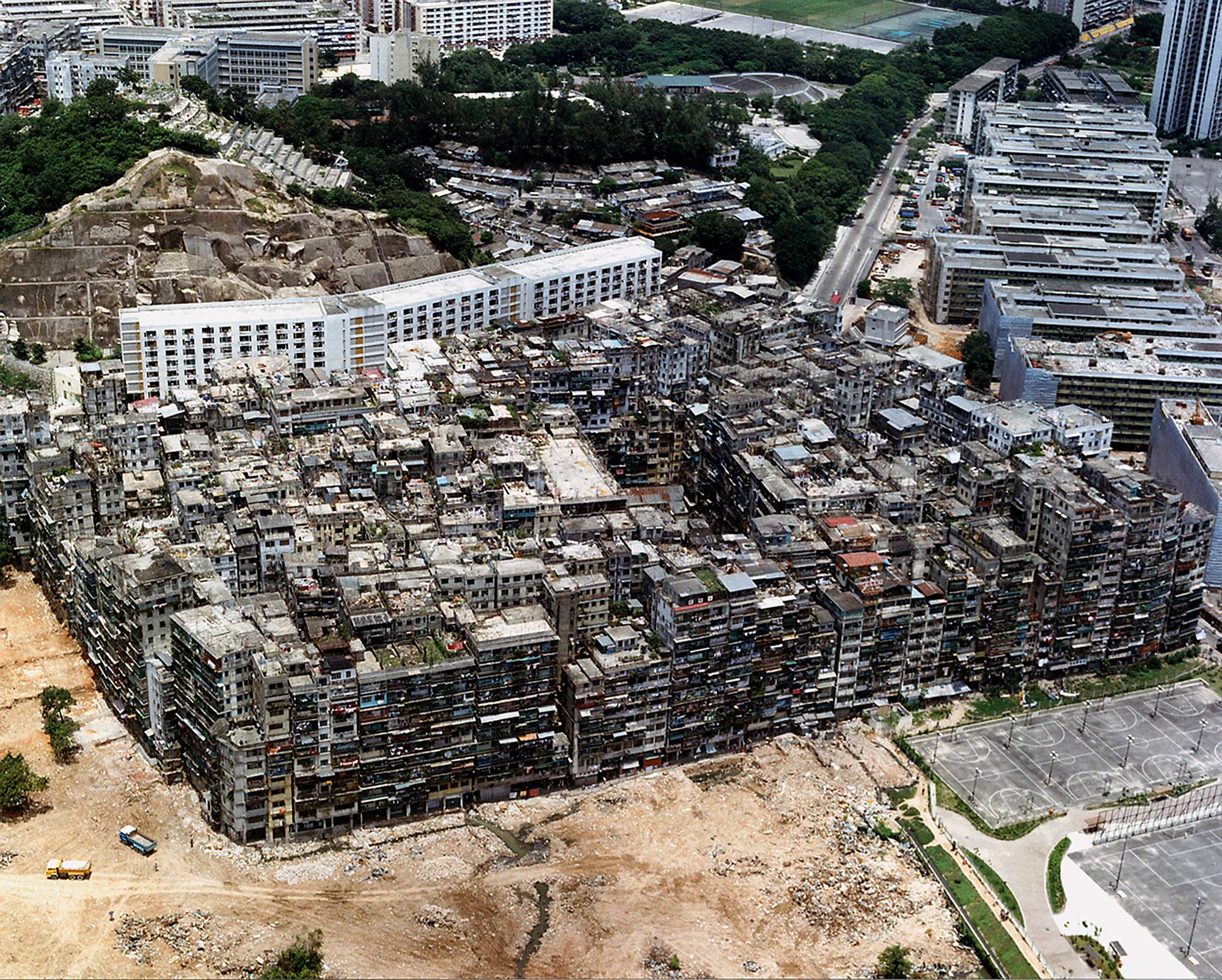 철거되기 전 과거 도시 계획의 아이콘이었던 홍콩의 구룡 성벽은, 1987년 1㎢당 약 1,255,000명의 주민이 거주할 정도로 지구상에서 가장 인구 밀도가 높은 곳으로 유명했다. 인구가 늘어난 이유에는, 그 당시에 중국이 이 지역에 대한 건설 규제를 하지 못했다는 점, 영국의 홍콩 지배 당시에 이 지역에 대해서 아무런 법적 조치를 하지 않았다는 점 그리고 세계 2차 대전 중 일본이 이 곳을 점령 했을 때 또한, 이 지역이 비이상적으로 커지는 것에 대해 아무런 조치를 하지 않았다.